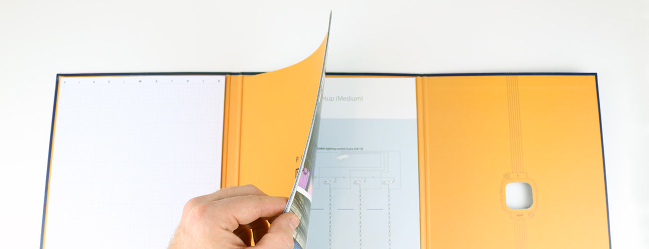 Premium fold-out booklet with writing pad
